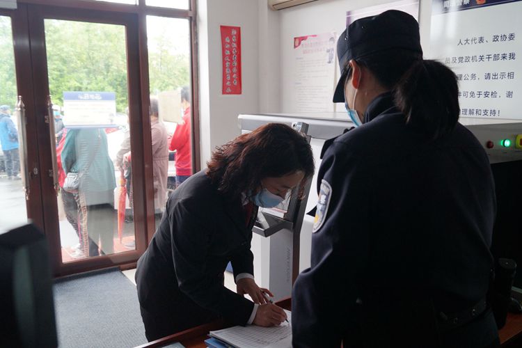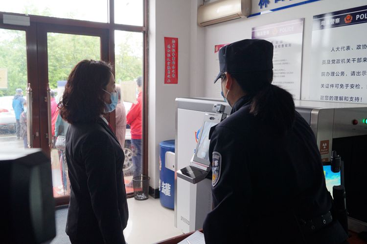 “走流程”过程中,院长杜蕴青来到安检大厅,在安检人员的引导下进行了身份登记、扫“双码”、测体温、人身安全检查。