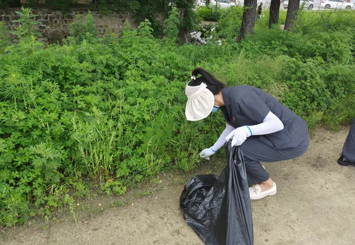 干警们拿着装垃圾的塑料袋,手戴手套,分组捡拾纸屑、饮料瓶、烟头等垃圾,尤其对一些草丛进行了细致的清理。干警们团结协作,发挥不怕脏、不怕累的精神,将清理出来的垃圾装进袋子放进指定的垃圾桶。经过将近两个小时的劳动,大家的垃圾袋里都已“ 战果累累 ”,河岸被清理的干净整洁。
