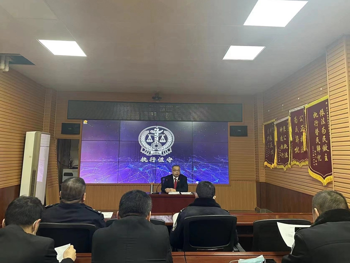 会上,执行局负责人马达首先通报了2022年度整体执行质效情况,指出了执行工作存在的短板,通过分析数据,梳理出产生问题的原因,并提出有针对性整改方案。