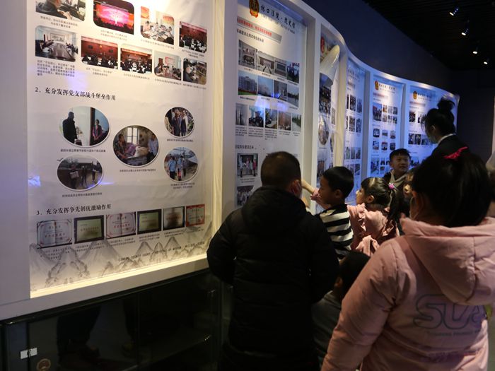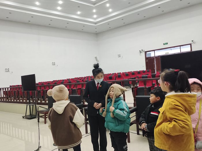 学生们在老师及讲解员的带领下充满好奇地走进法院,兴致勃勃地参观了安检大厅、审判庭、文化长廊、院史馆等场所。讲解员用通俗易懂的语言,向小朋友们详细介绍了法院的基本情况以及案件的诉讼流程,使大家对法院各项基本职能有了初步的了解。