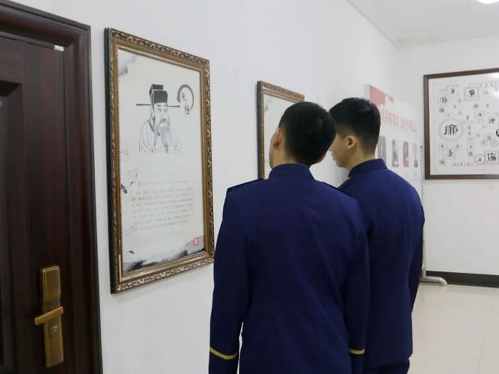 森警战士们参观了法院廉洁主题教育长廊。长廊以敬业守廉为主线,由廉洁故事生动诠释了历史上清官廉吏的精神风貌和中华民族廉洁文化的世代传承,结合中国共产党自身建设发展的历程,展现党走过的光辉历程。
