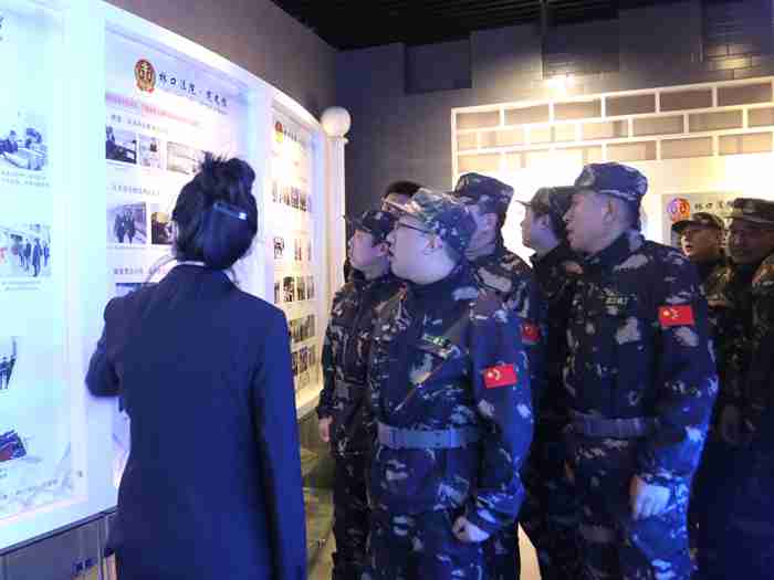 在讲解员的引领下,消防同志们先后参观了安检室、刑事审判庭、互联网审判庭、法院浮雕墙、院史馆等场所。
