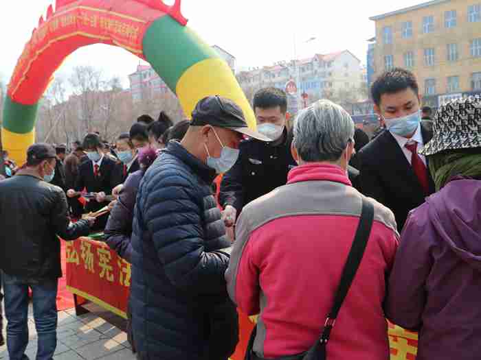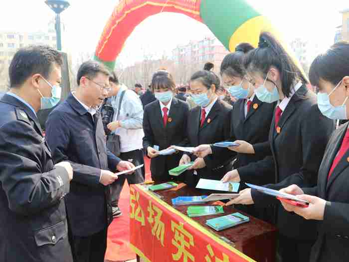 3月31日上午,县司法局举行“解民忧 纾企困 法律服务万人走基层”普法宣传专项行动暨“谁执法谁普法 一行业一主题”普法宣传活动启动仪式,林口县法院政治部负责人于宝霖带队,带领法院近20名干警参加活动并在兴林广场开展普法宣传,为过往群众提供法律咨询。
