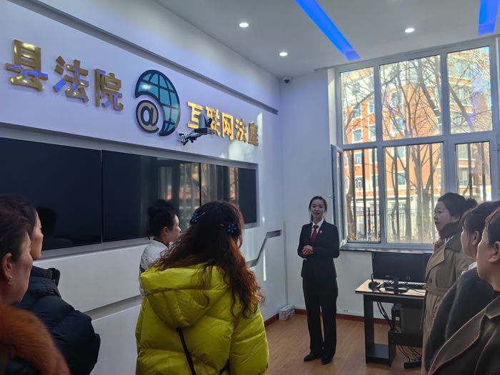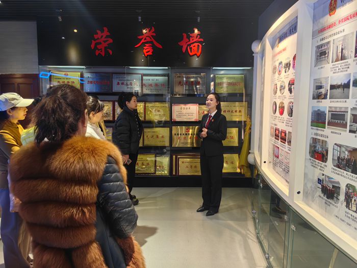在法院工作人员的引导下,大家先后参观了诉讼服务中心、审判庭、院史馆等场所。在诉讼服务中心,工作人员详细介绍了“一站式”多元解纷和诉讼服务体系建设情况,每一个服务窗口、每一项便民举措都让参观人员们直观感受到司法的温度与效率。步入审判庭,庄严肃穆的氛围让参观人员们真切体会到司法的权威与庄重。在院史馆和文化走廊,老照片、荣誉墙与法治文创展品交织,大家在图文与实物中,读懂了法院护航县域发展的法治初心。