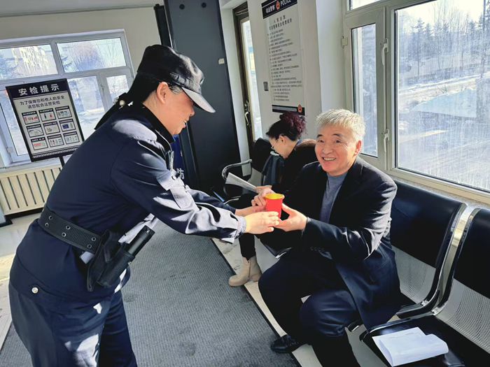 “大爷,您先喝杯热水暖暖手,别着急,我这就帮您联系法官确认情况。”近日,在林口县法院安检大厅内,正在值班的鲁麟将刚倒好的热水递到李大爷手中,随后就熟练地拿起电话沟通,让因焦急赶路而满脸通红的李大爷渐渐平复了情绪。