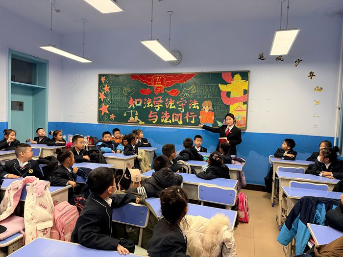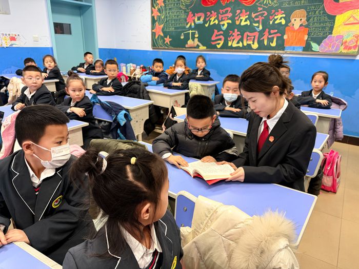 活动现场,法院干警结合小学生的年龄特点和认知规律,摒弃晦涩难懂的法律条文,用“讲故事、举例子、互动问答”的方式,围绕《中华人民共和国未成年人保护法》《中华人民共和国预防未成年人犯罪法》等与青少年息息相关的法律知识展开讲解。针对校园欺凌、交通安全、网络沉迷、防范陌生人侵害等小学生常见的安全问题,干警们通过情景模拟、真实案例剖析,生动阐释了“什么是违法行为”“如何保护自己的合法权益”“遇到危险该怎么办”等关键内容,引 导同学们树立正确的是非观念,学会用法律武器守护自身安全。