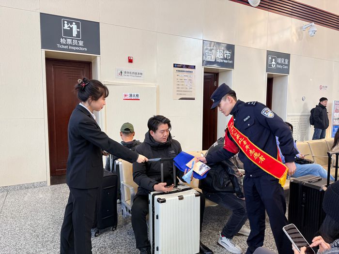 为切实守护旅客财产安全,筑牢车站反诈防护网,近日,林口县法院刑庭干警联合派出所民警走进车站,开展主题反诈宣传活动,将法治安全知识送到旅客身边。