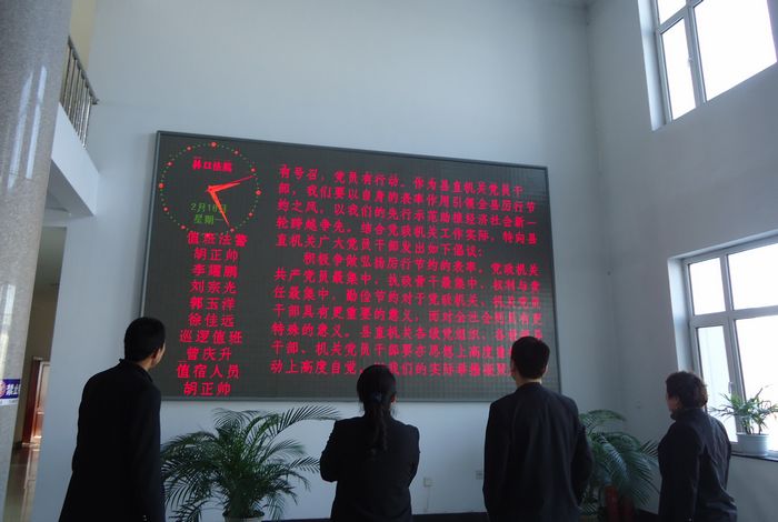 法院干警观看“厉行节约,法院先行”的宣传屏幕