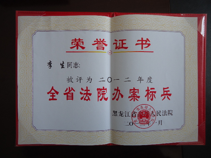 林口法院民一庭庭长李生荣获省院办案标兵称号