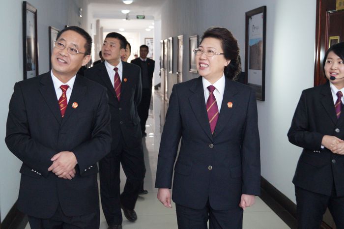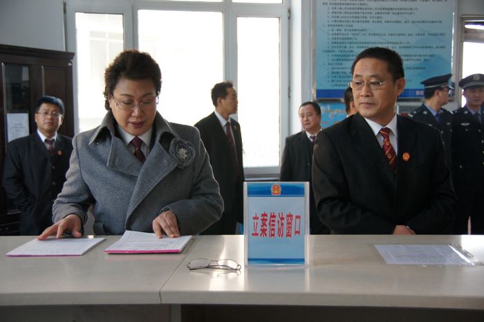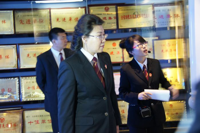 视察从参观立案大厅开始,张敏院长一行分别来到了信访接待室、文化走廊、图书阅览室、院史馆,视察过程中,由解说员进行了详细介绍。参观结束后,张敏院长听取关俊林院长就林口法院基本工作情况、发展现状和未来规划的汇报,之后党组成员分别就分管工作中向中院提出意见、建议。并邀请林口籍市人大代表、政协委员对两级法院2013年度工作进行评议,会上张敏代表两级法院对人大代表及政协委员对法院工作的支持及帮助表示感谢。
