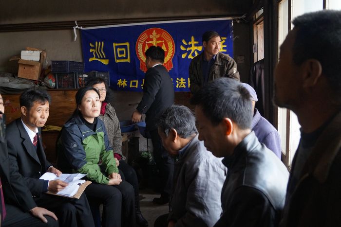 近日我院受理的一起赡养案件,原告现已91岁高龄,既没有经济来源,又重病缠身,已完全失去自理能力,居住在曙光村,离刁翎法庭70多公里,无公路,考虑到老人行动不便,且几个被告年龄也已70多岁,决定到原告居住地开庭。