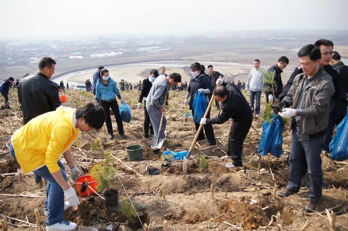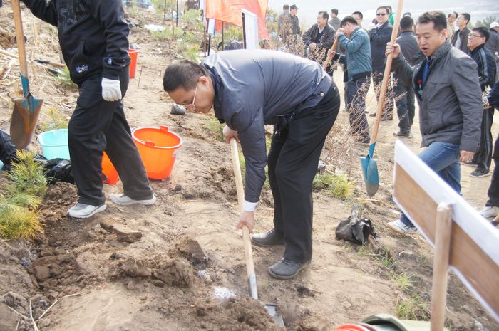 4月18日上午,林口县人民法院积极响应县委号召,党组书记关院长同其他党组成员带领30名干警来到北山义务植树区,共同参与以“退耕还林”为主题的营造绿色林口活动。